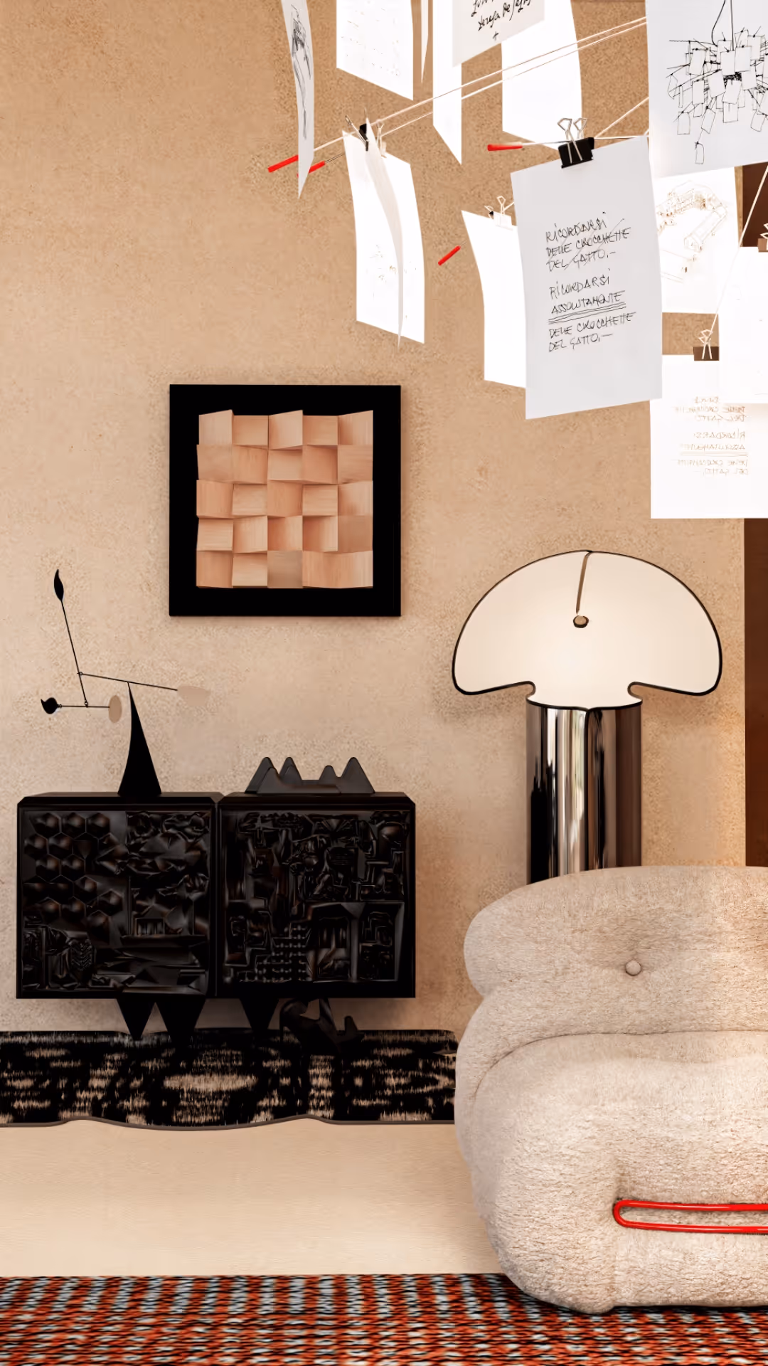Sofa: Tacchini Sesann (on interiorteacher.com) – Originally designed in the 1970s by Gianfranco Frattini, the Sesann sofa embraces soft, organic curves held together by a bold tubular steel structure. Its inviting form and generous proportions embody Italian radical design with timeless appeal.