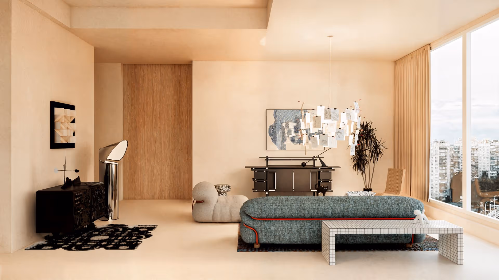 The greatest challenge was integrating playful, pop-inspired accents into a serene and sophisticated palette without losing cohesion. The solution lay in carefully selecting textures—wool, boucle, glass, and polished metal—that tied disparate colors into one elegant story.