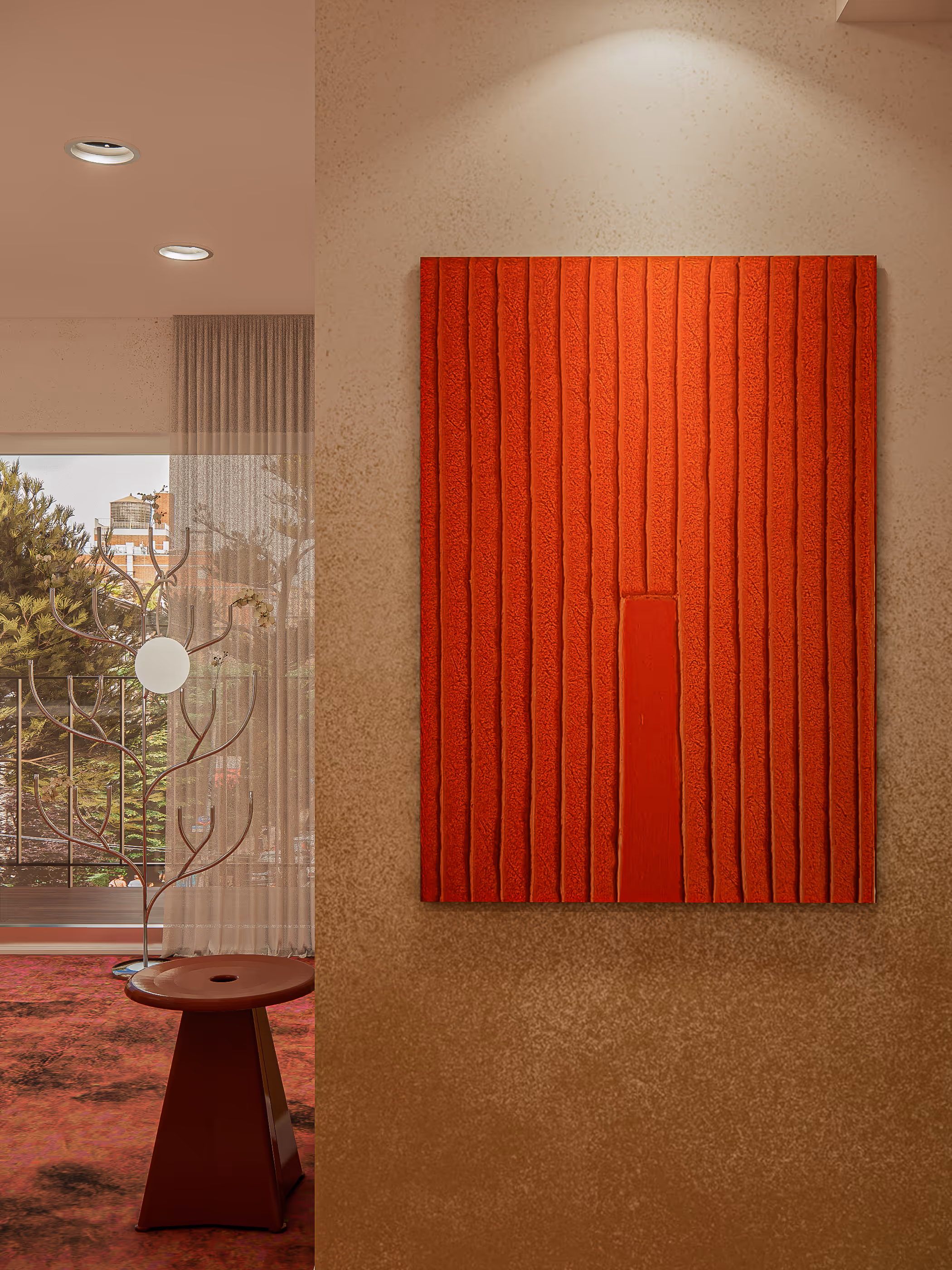 At the heart of New York City’s Upper East Side, a distinguished art investor has transformed a 3863SF Luxury Residence into a modern sanctuary of creative refinement. With a $74,000 investment dedicated to bespoke details, this dining room stands as a striking example of how Luxury Interior Design, High-End Furniture, and bold color palettes can merge to create an extraordinary living experience. Luxury brands and custom artistry anchor the space, reflecting the sophistication of a collector’s lifestyle. The dining room embodies the persona of an avant-garde visionary, someone whose life revolves around contemporary art, global travel, and a deep appreciation for iconic design. Every element—from the vibrant pink and red carpet to the gold accents and sculptural lighting—has been chosen with the eye of a curator, creating an environment that is not only for dining but also for experiencing design as living art.
