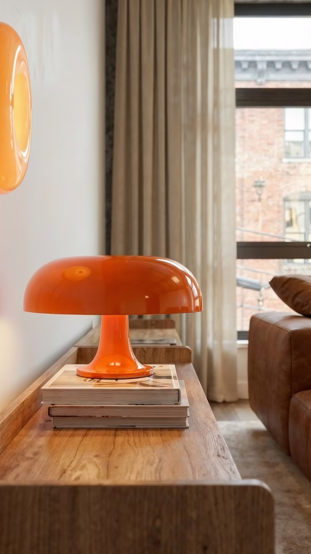 Lamp: Artemide Nessino – Nessino is an icon of Italian design from the ’60s, a decade that heralded the conquest of modernity in which design redefined the domestic landscape though the first uses of plastics. Innovative and democratic, its expressive form inspired by nature interprets and challenges industrial manufacturing technology.