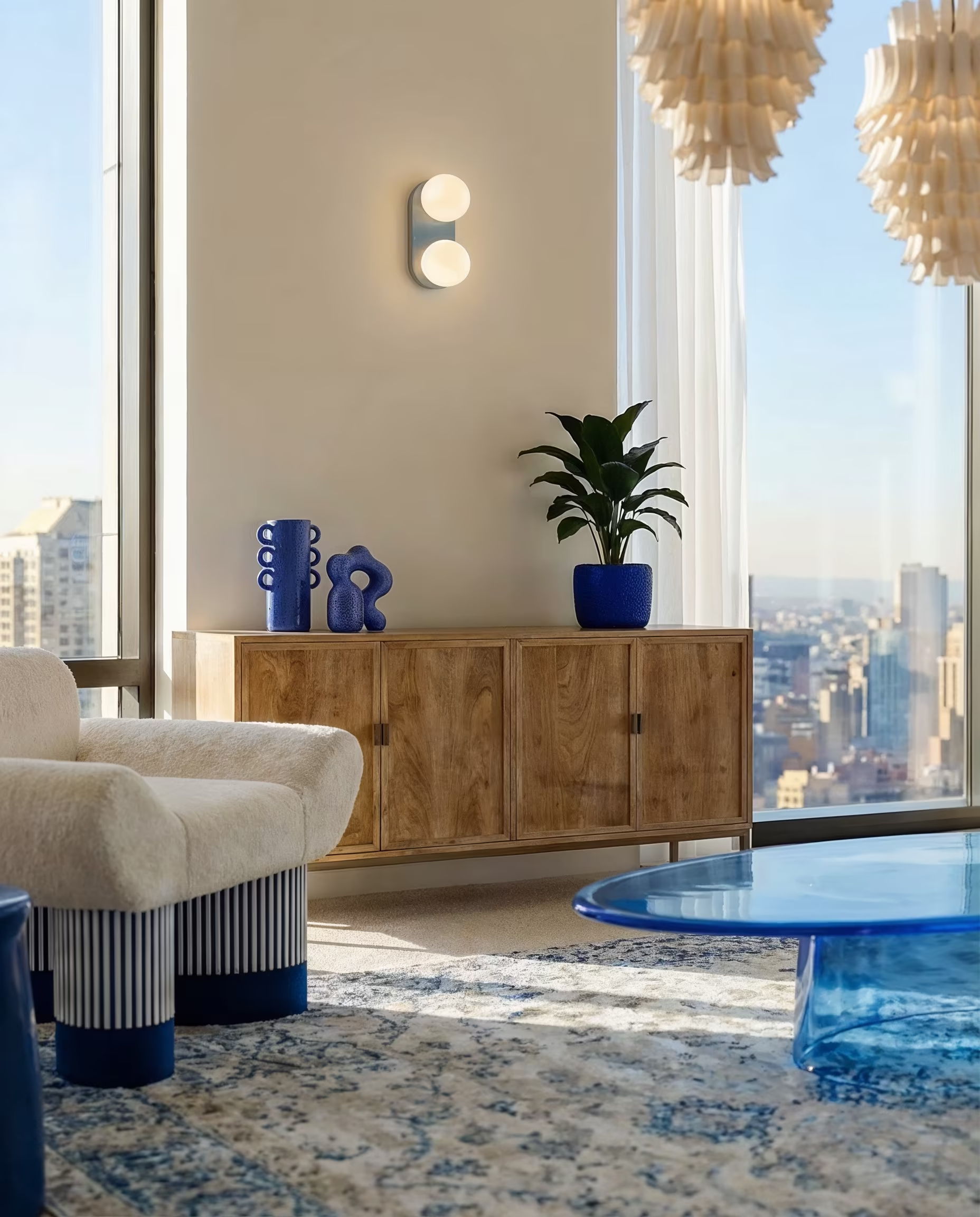 “A space where carefully layered color and texture float above the city panorama, creating an elevated salon where everyday living and hosting coexist with effortless elegance.”– Lead Designer